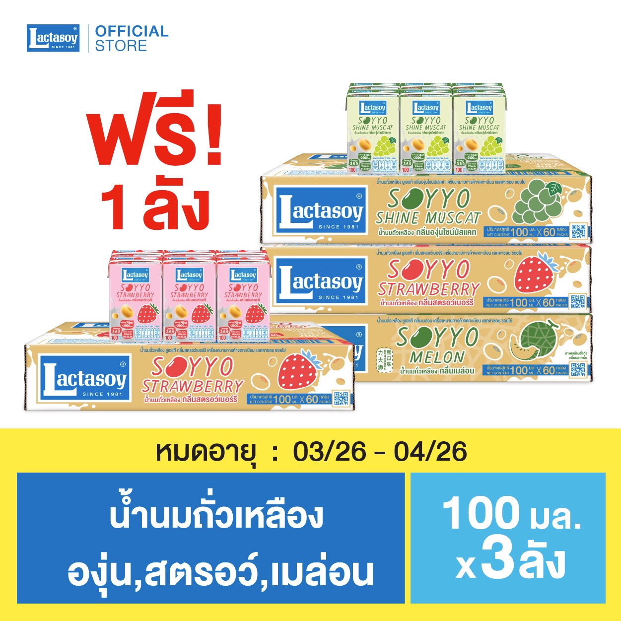 แลคตาซอย ซอยโย่ องุ่น,สตรอว์,เมล่อน 100 มล. 3 ลัง แถม 1 ลัง (หมดอายุ 03/26 – 04/26)