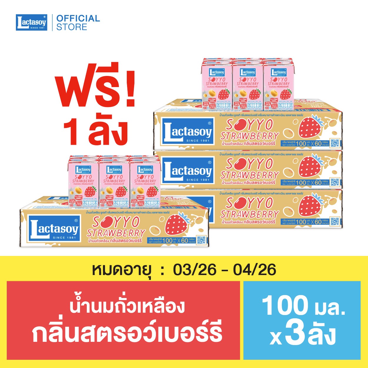 แลคตาซอย ซอยโย่ สตรอว์เบอร์รี่ 100 มล. 3 ลัง แถม 1 ลัง (หมดอายุ 03/26 - 04/26)